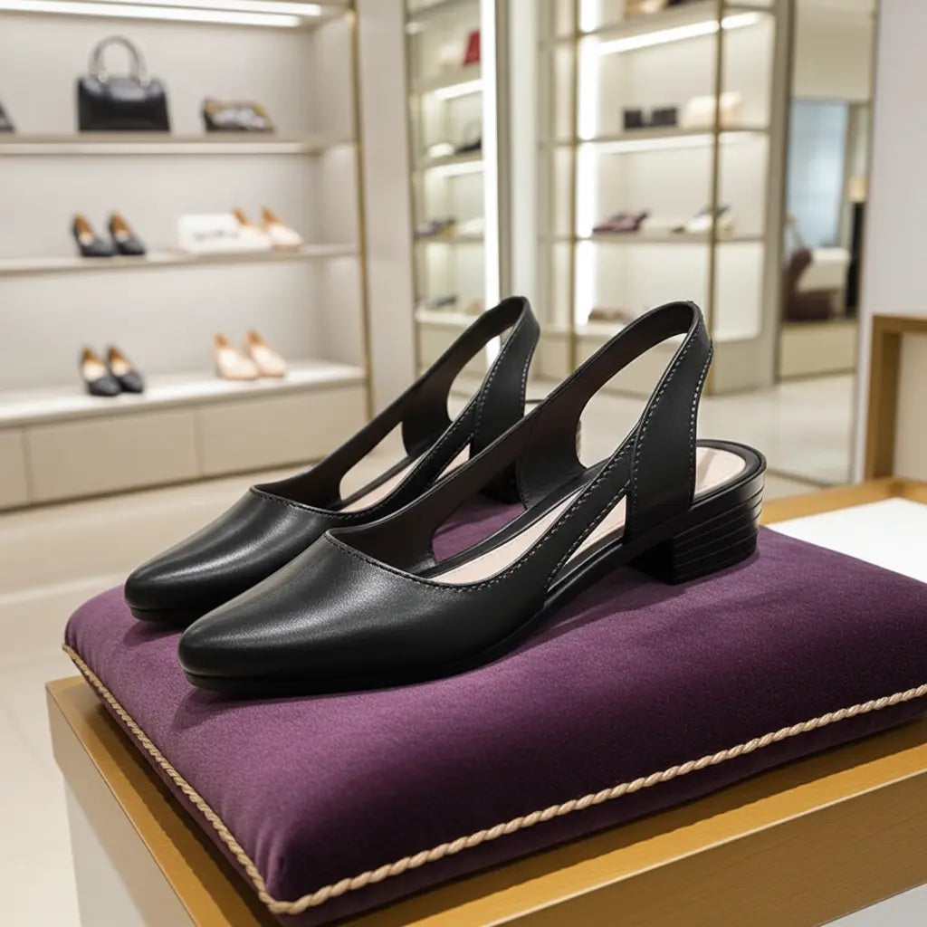 ✔️ Design slingback aberto → mantém o pé fresco e seguro ao mesmo tempo.