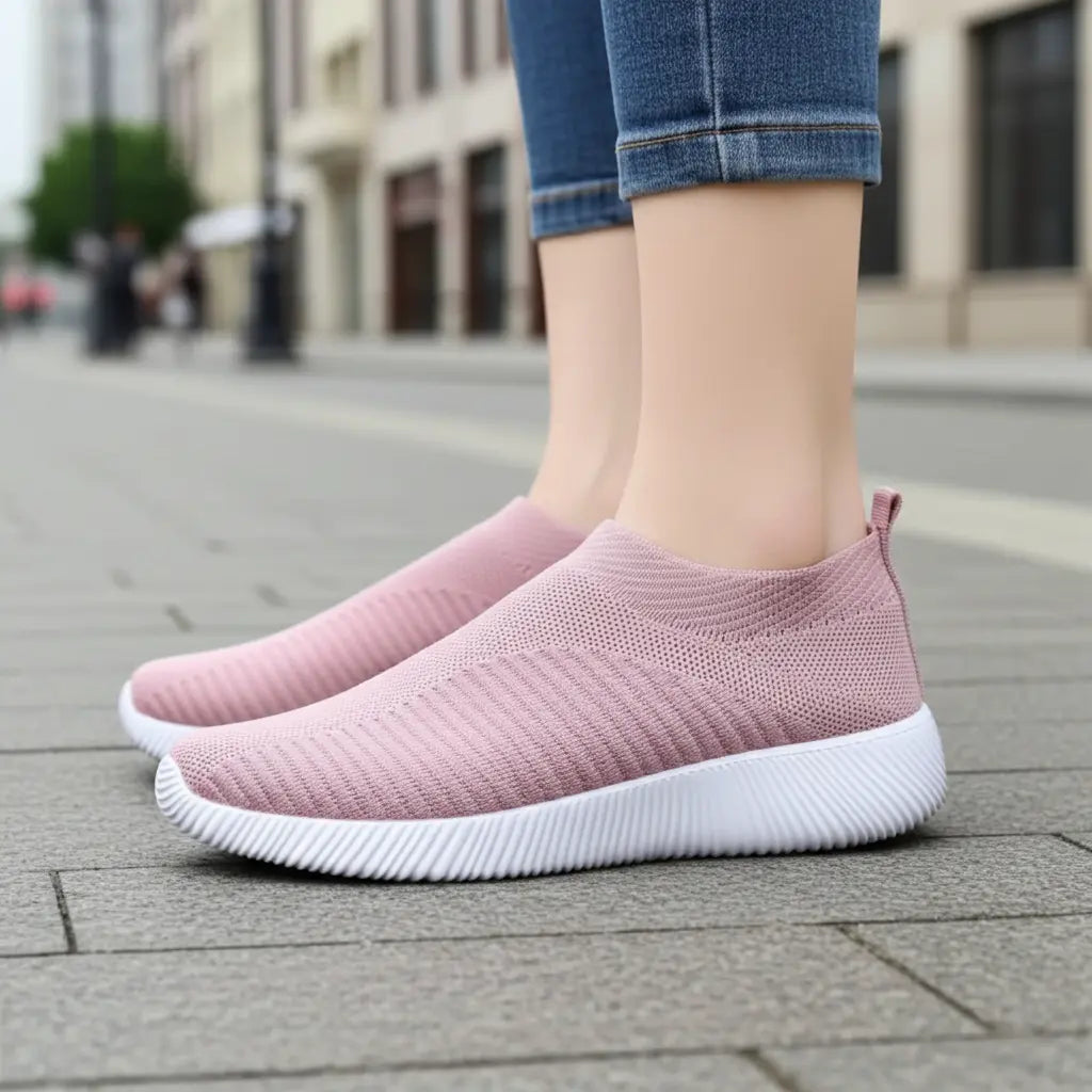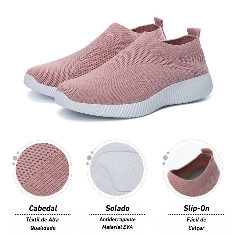 ✓ Ajuste gentil (slip-on) que envolve sem apertar joanete/alto do pé.